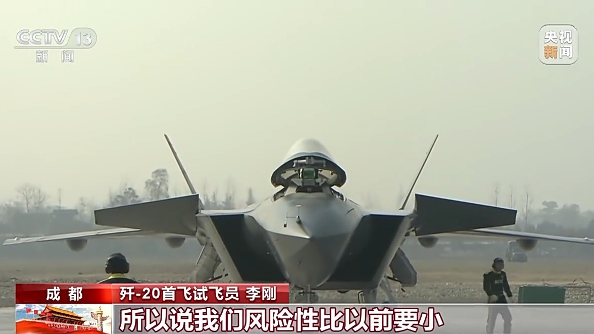 殲-20首飛試飛員 李剛:我們研制飛機的水平不斷在提高,如果是發生了顫振,這個飛機會解體的,你跳傘都來不及,但是我們現在風洞吹完了以后,對這種顫振特性心里是有底的,所以說我們風險性比以前要小。