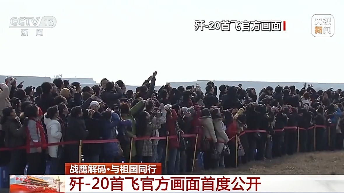2011年1月11日下午,殲-20技術驗證機從成都溫江機場一躍而起,跑道一側的研制人員歡呼吶喊,目送這架凝聚心血的戰鷹飛向藍天。