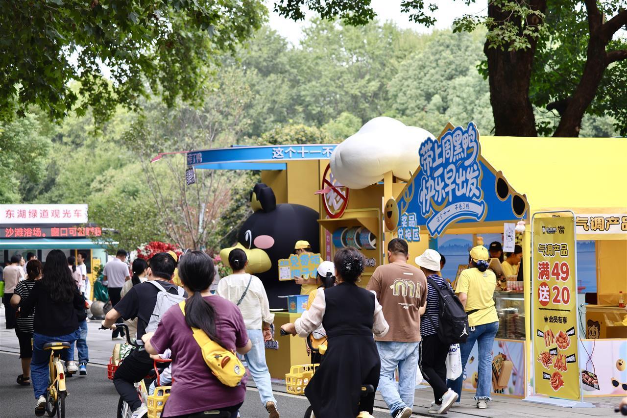 為迎接“超長假期”,湖北各地精心策劃推出百項必打卡清單、千場文旅活動及多項便民惠客措施,文旅消費在景區、街區、商區、鄉村等多點綻放。武漢咸安坊、平和坊等里弄街區通過非遺生活嘉年華煥發新活力,成為市民游客日夜暢游的熱門區域;黃岡遺愛湖景區以東坡文化為主題,四天接待游客24萬人次;荊門鐘祥“壽鄉·村超”足球聯賽舊口分會場日均吸引游客超2000人。