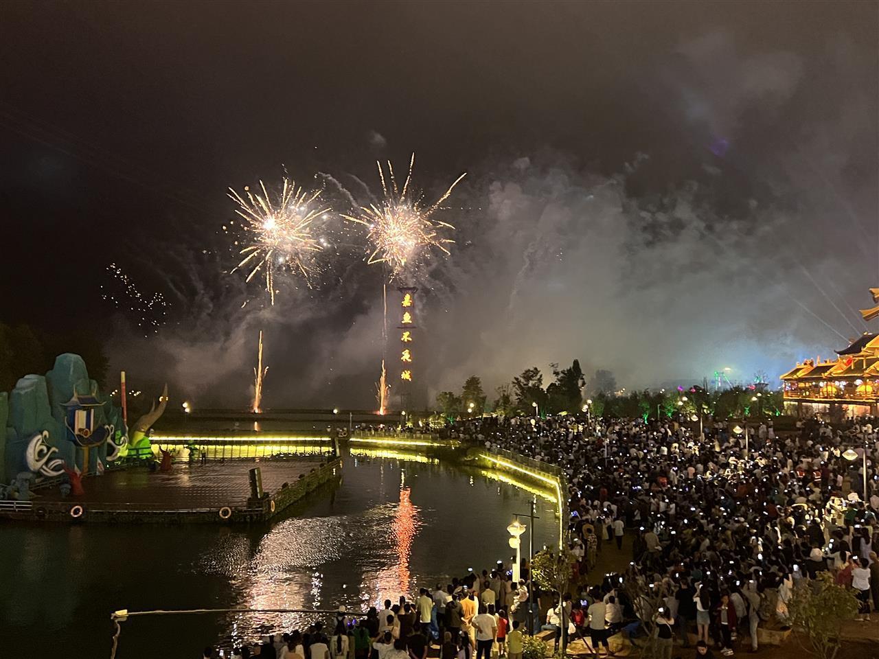 嘉魚不夜城每日煙花秀吸引了眾多游客觀看