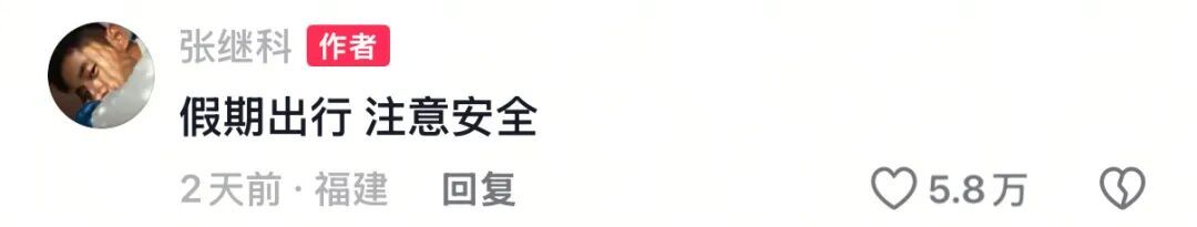 在視頻評(píng)論區(qū),張繼科留言提醒大家:“假期出行注意安全。”