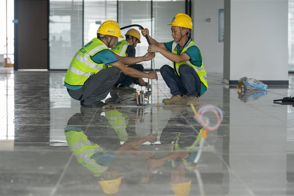 10月1日,位于光谷的中建三局烽火通信5G承載應(yīng)用及數(shù)字經(jīng)濟研發(fā)生產(chǎn)基地現(xiàn)場,水電工陳鄭和工友們放棄休假,加緊機電管線安裝。這座總建筑面積22萬平方米的研發(fā)生產(chǎn)基地,是烽火通信實現(xiàn)產(chǎn)業(yè)升級、強化5G布局的核心載體。項目現(xiàn)場每天都有500多名建設(shè)者堅守施工一線,全力沖刺完工節(jié)點。國慶、中秋“雙節(jié)”期間,中建三局在漢重點項目現(xiàn)場不停工、不斷檔,建設(shè)者們堅守崗位,拼節(jié)點、保進度,用汗水與實干向祖國獻禮。(湖北日報全媒記者 魏錸 通訊員 陳雯 攝)