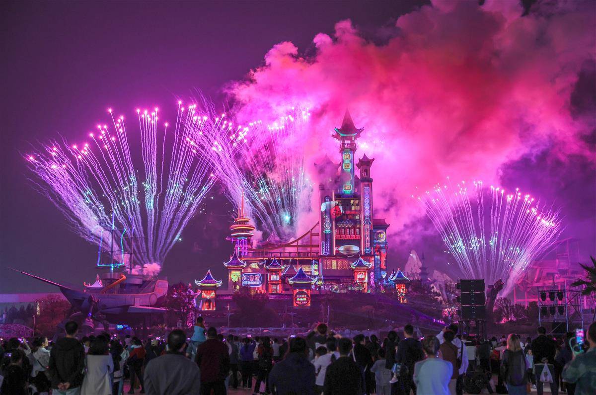 10月3日,襄陽華僑城奇幻度假區在國慶、中秋假期,推出花車巡游、奇夢城堡光影秀、煙花無人機秀等表演,為游客帶來豐富的沉浸體驗,吸引了眾多游客前來游玩。今年國慶、中秋假期,襄陽市主題樂園成為熱門打卡地,不僅帶動門票收入增長,還拉動周邊住宿、餐飲等相關產業消費,樂園產業正在釋放更大發展活力。(視界網 楊東 攝)
