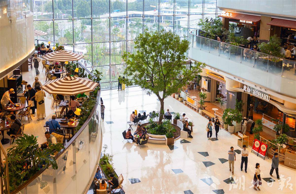 10月4日,武漢武昌濱江天街人氣火爆,顧客在“公園式”商業(yè)空間中購物、休憩、打卡拍照,享受“逛公園”般的悠閑與愜意。作為武漢首個(gè)自帶1.3萬平方米綠地公園的商業(yè)綜合體項(xiàng)目,這里將自然生態(tài)與商業(yè)消費(fèi)有機(jī)融合,讓市民在商場里也能體驗(yàn)微度假的樂趣。(湖北日報(bào)全媒記者 薛婷 攝)