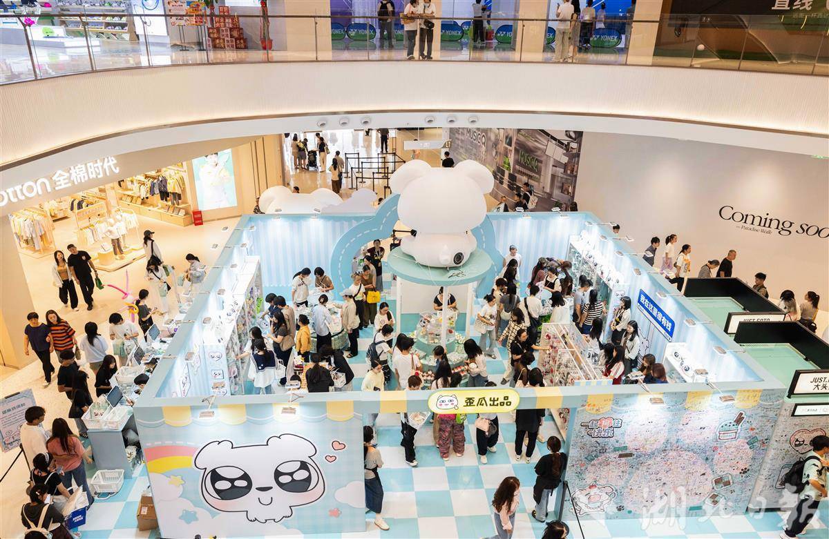 10月4日,武昌濱江天街,“這狗”IP全國首展門前排起長龍,各式文創產品吸引消費者駐足。