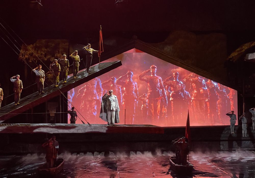 紅軍小戰(zhàn)士犧牲的場景令游客落淚,有游客說:“終于明白課本里的‘英勇’是什么模樣。”演出結(jié)束后,眾人揮旗高唱《歌唱祖國》,抒發(fā)對祖國的熱愛與祝福。