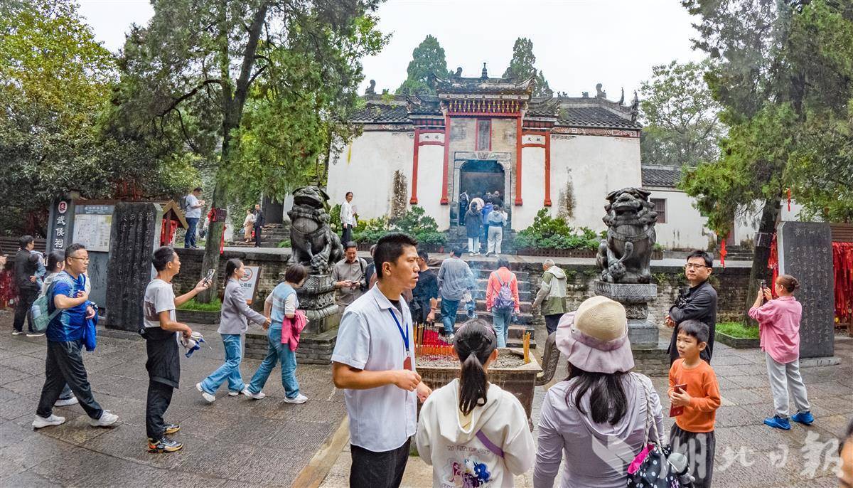 10月5日,襄陽古隆中景區游人如織,假期前五日預計接待游客超10萬人次。景區以 “遇見” 為核心主題,通過三大創新舉措將三國文化轉化為可參與、可互動的文旅體驗,掀起沉浸式游覽熱潮。每日3 場大型實景秀常態化上演,石牌坊《隆中對》、三顧堂《三顧茅廬》、嘯臺《話說三國》每日累計演出10場,單場可容納2000名游客。虛實交織的演繹讓游客 “沉浸式穿越三國”,景區相關負責人表示,將持續深化 “遇見諸葛亮” 主題 IP,讓歷史文化在互動體驗中 “活起來”。(湖北日報全媒記者 劉曙松 通訊員 王虎 崔海晗 攝)