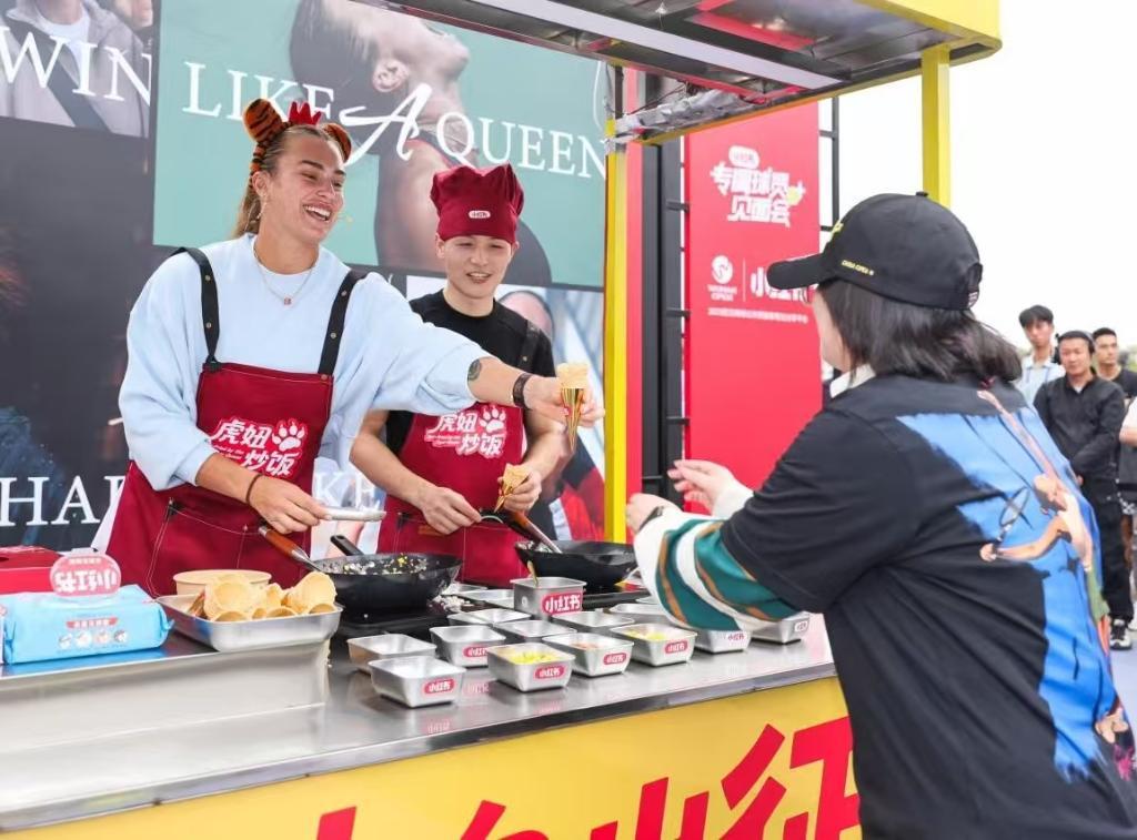 10月4日,薩巴倫卡在武網(wǎng)參加球迷見面活動時化身廚師,現(xiàn)場進行了炒飯演示。