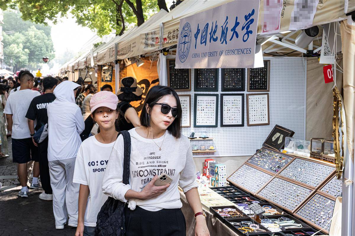 10月5日,游客在黎黃陂路的創業市集挑選小禮物。(湖北日報全媒記者 任勇 攝)