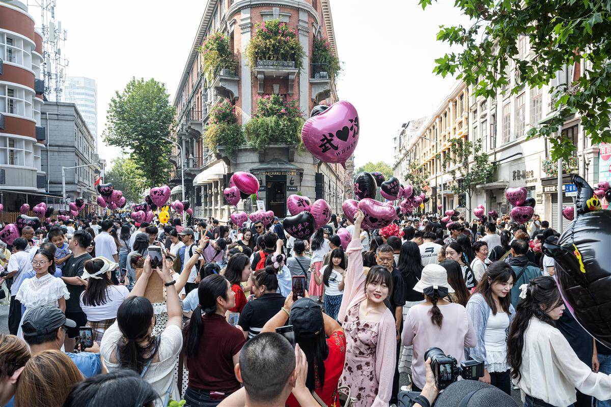 10月5日,黎黃陂路、巴公房子、中共中央機關舊址等漢口歷史文化風貌區的熱門打卡點位人氣火爆,來自全國的游客拍照、喝咖啡、品美食,領略老漢口里份文化的獨特韻味,流連于全新的文旅消費場景。