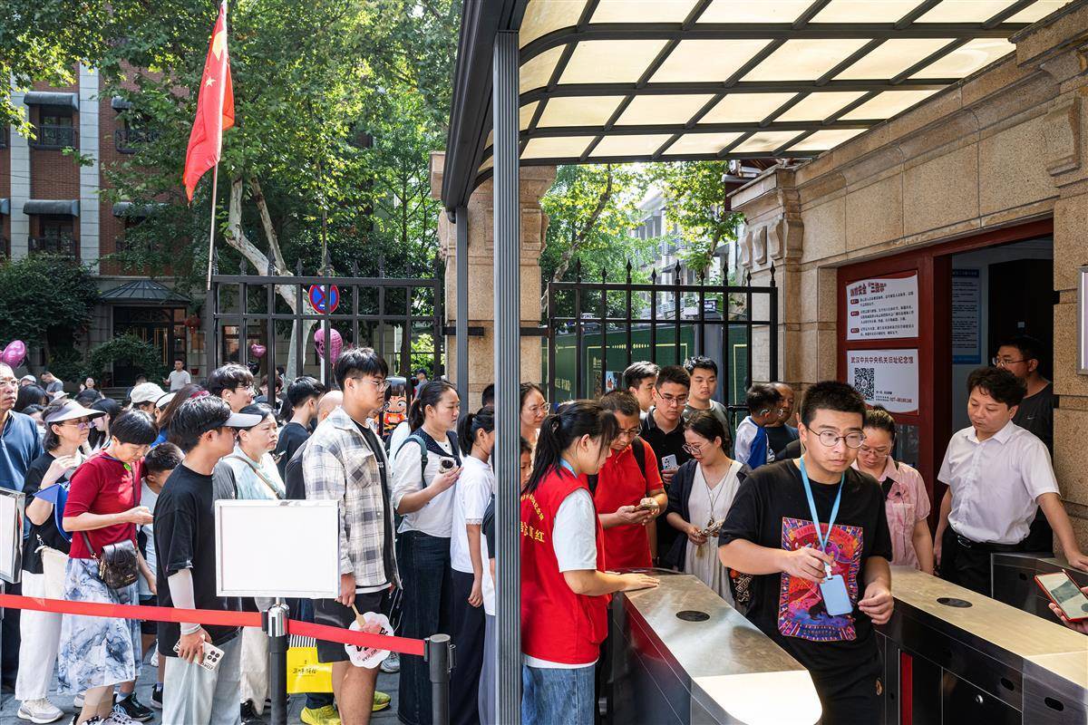10月5日,游客在中共中央機關舊址門前有序排隊。(湖北日報全媒記者 任勇 攝)