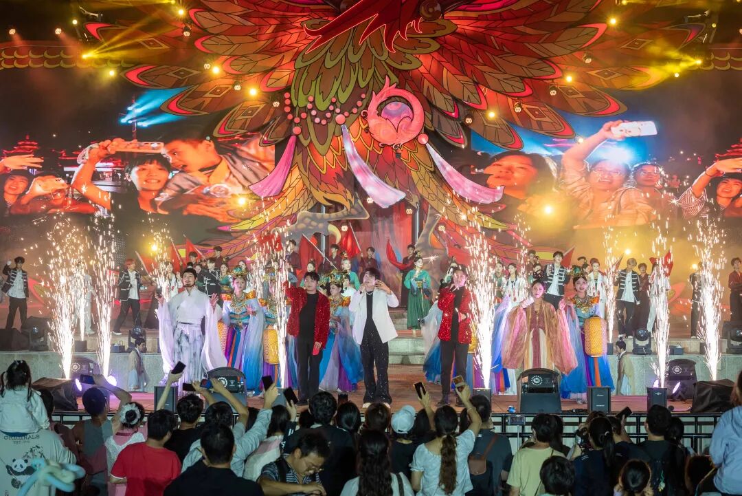 荊州方特東方神畫以“國風(fēng)潮玩節(jié)暨中秋奇妙夜”為主題,打造系列楚文化體驗項目。“楚都花宴”迎賓、《百花大巡游》等劇目演出,帶領(lǐng)游客深入感受楚文化魅力。夜間推出了《千燈明月宴》與《荊城焰慶》煙花秀。