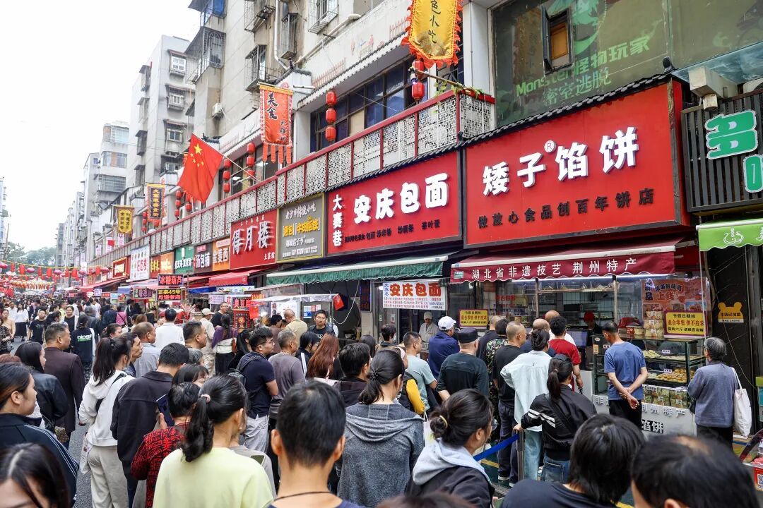 國慶期間的荊街化身為非遺文化與國潮新風(fēng)交融的展示舞臺,營造出穿越時空的沉浸式體驗。
