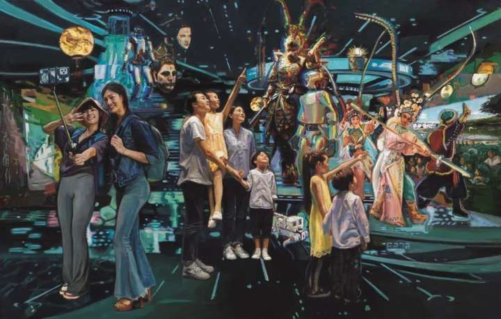 油畫《文化的力量——深入推進“文化+科技”“文化+旅游”“文化+民生”》,浙江省油畫院集體創作。近年來,文化創新創造活力涌動,“文化+”跑出美好生活加速度。作品生動捕捉這一時代脈動,以科技館為背景,通過描繪不同年齡、不同身份、不同群體的觀眾,借助科技等力量樂享多元文化的場景,展現了文化與科技、旅游、民生融合發展趨勢,以及其賦能人民美好生活的廣闊空間。