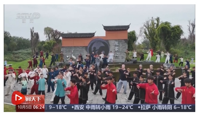 在現場,來自多個國家和地區的太極拳習練者身著練功服,在悠揚的音樂聲中緩緩起勢,他們動作整齊劃一,一招一式展現出了太極拳的剛柔并濟。