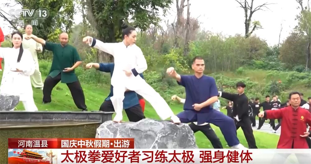 在河南溫縣,假期期間,陳家溝國際太極院組織太極拳愛好者們習練太極拳,強身健體。