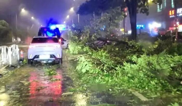 10月5日19時40分許,北海市云南路和北海大道交匯處附近路面已有不少樹木倒伏。北海融媒?鐘雙蓮 攝