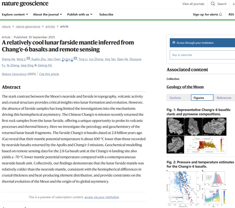 中國科學家首次基于嫦娥六號月球背面樣品研究發現,月球背面月幔相比月球正面更“冷”,這一發現進一步深化了人類對月球“二分性”現象的認識,為月球正面與月球背面的月幔溫度差異提供了巖石學與地球化學等科學依據,為月球演化和“二分性”特征研究提供了關鍵科學數據。