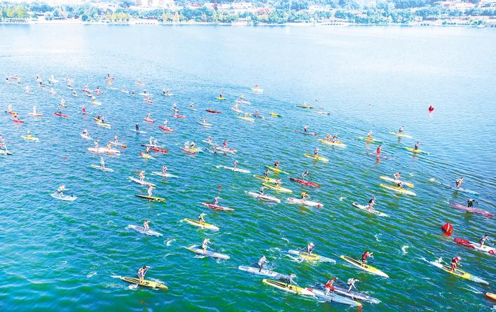10月5日,2025黃石槳板邀請賽在磁湖未蘇灣開幕。來自國內(nèi)外的500余名運(yùn)動員齊聚黃石,揮槳競速、碧波爭鋒。近年來,黃石積極挖掘湖泊資源潛力,著力培育水上運(yùn)動項目,槳板、賽艇、龍舟等項目漸成風(fēng)尚,全民健身氛圍日益濃厚,水上運(yùn)動蓬勃發(fā)展。