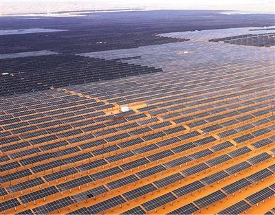 寧夏全力打好“三北”工程黃河“幾字彎”攻堅戰,截至今年5月底,已完成治理面積422萬畝。圖為寧夏中衛的騰格里沙漠新能源基地。