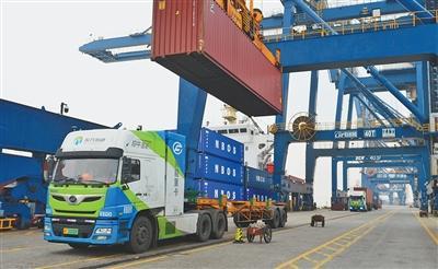 浙江嘉興立足氫能源領域資源優勢,持續拓展氫能示范“應用鏈”。圖為嘉興港乍浦港區,氫能重卡在集裝箱碼頭運輸作業。