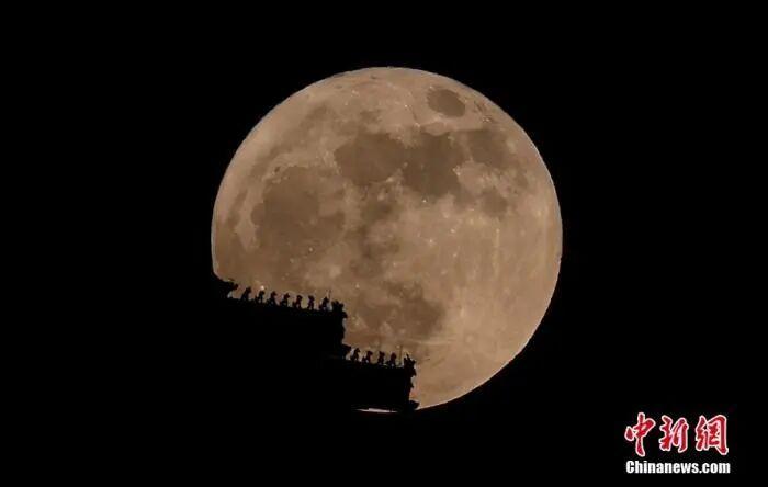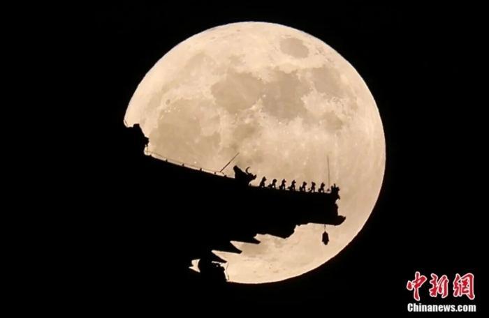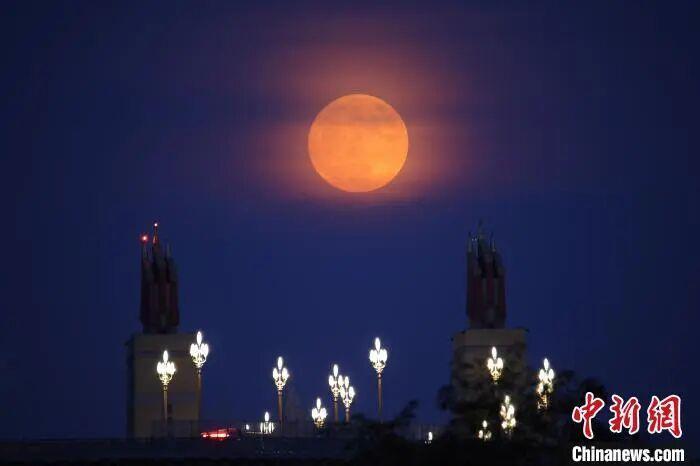 一輪“超級月亮”現(xiàn)身南京上空。中新社記者 泱波 攝