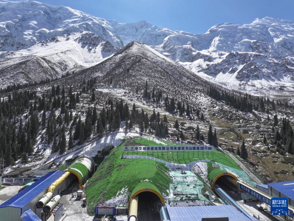 這是10月5日在新疆昭蘇縣拍攝的昭溫公路西天山特長(zhǎng)隧道進(jìn)口端(無(wú)人機(jī)照片)。從左至右依次為平導(dǎo)洞、左洞、右洞。