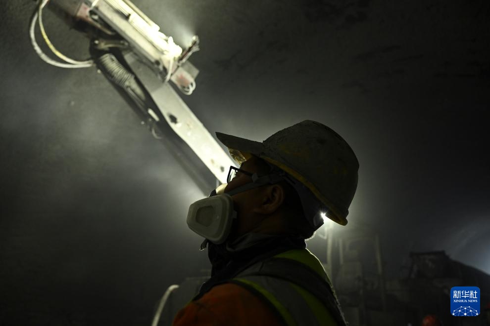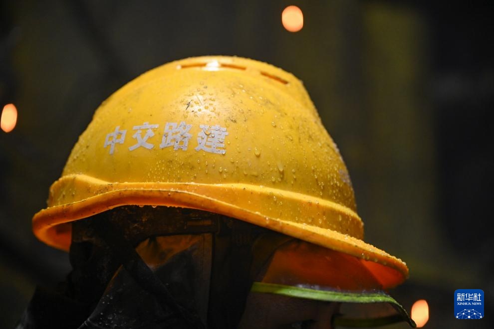 來(lái)自甘肅的工人王更興在昭溫公路西天山特長(zhǎng)隧道左洞內(nèi)施工(10月5日攝)。