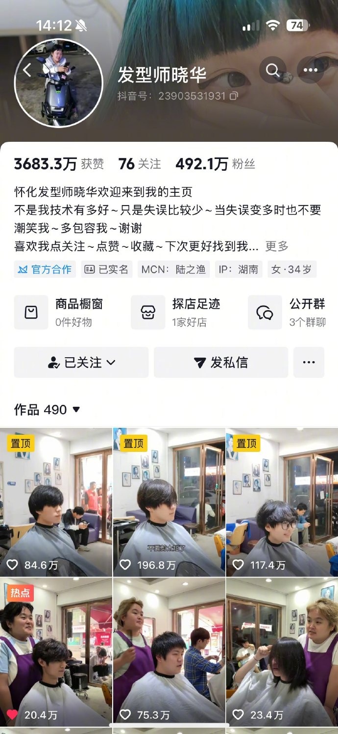 視頻意外走紅后,曉華一周內漲粉超百萬,理發店成為網紅打卡地。
