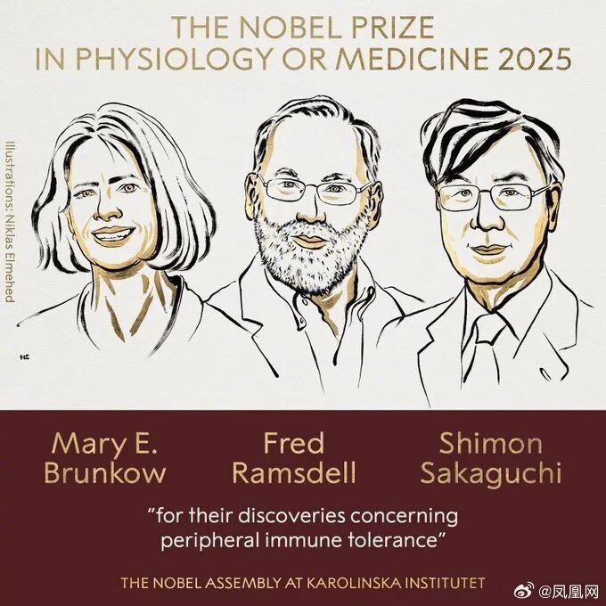 當地時間10月6日,瑞典卡羅琳醫學院宣布,將2025年諾貝爾生理學或醫學獎授予科學家瑪麗·E·布倫科(Mary E. Brunkow)、弗雷德·拉姆斯德爾(Fred Ramsdell)和坂口志文(Shimon Sakaguchi)。