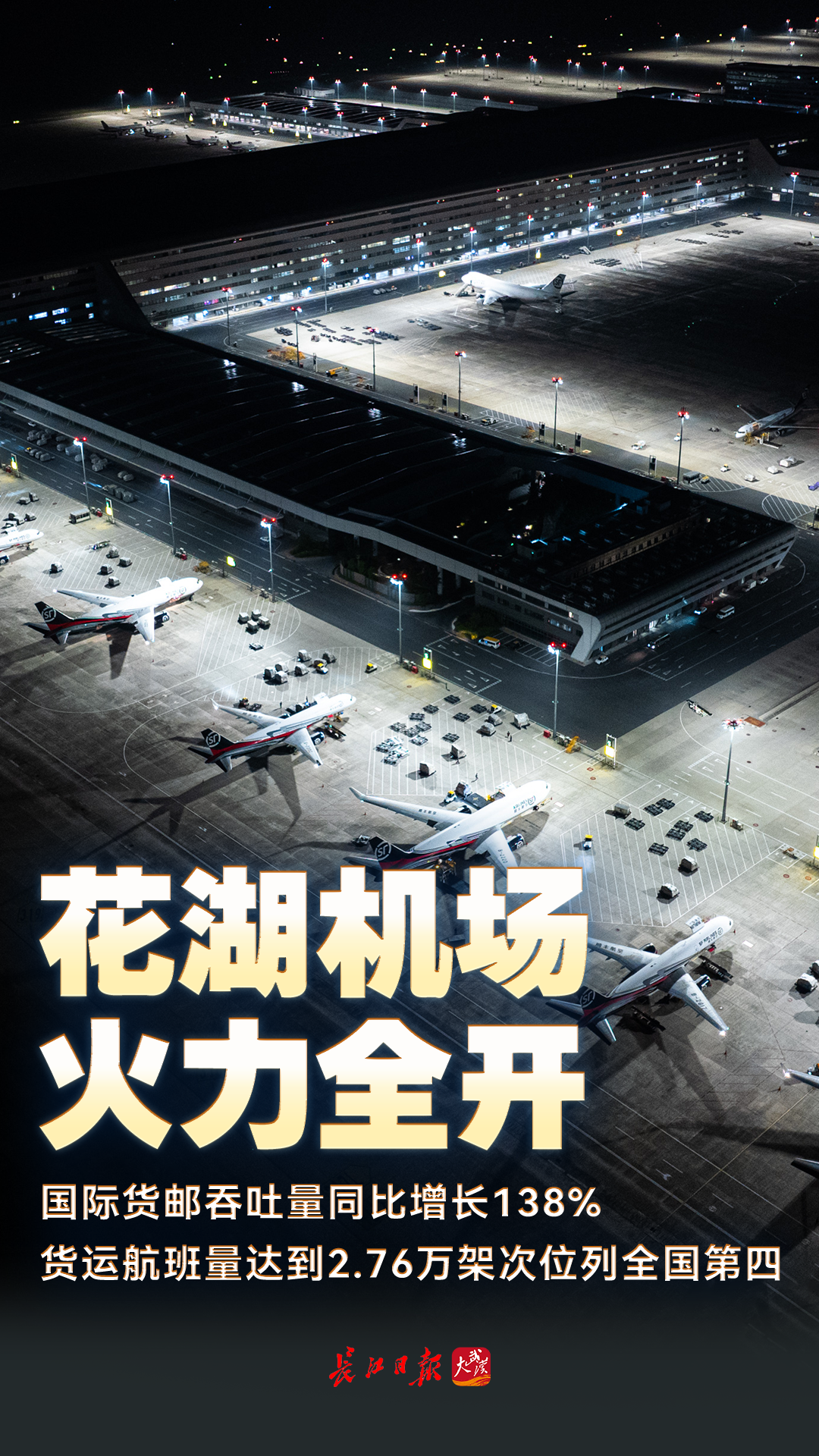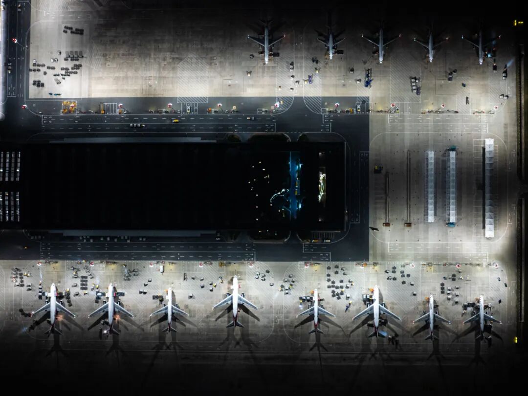 子夜時分,花湖機場燈火通明。新華社記者肖藝九 攝