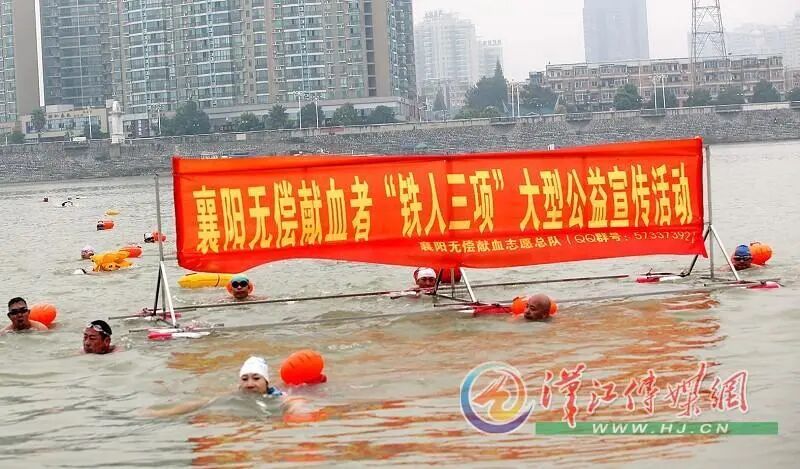 2011年10月1日,襄陽無償獻(xiàn)血志愿者總隊(duì)的25名隊(duì)員,舉行“鐵人三項(xiàng)”活動。記者李云飛攝