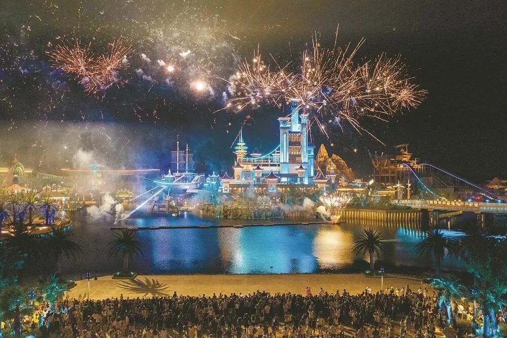 2022年10月1日,襄陽華僑城奇幻度假區(qū)舉辦“奇幻煙火 禮獻(xiàn)祖國”大型煙火秀。記者楊東 通訊員孫可欣攝