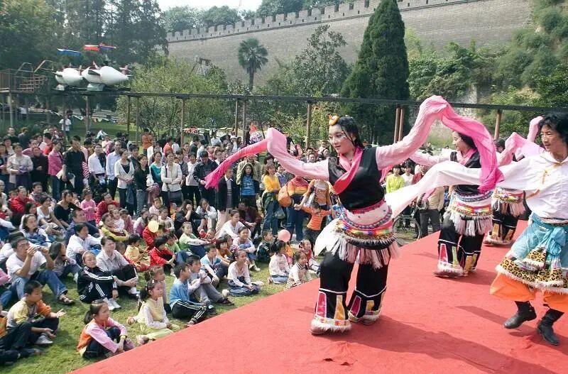 2008年10月1日,在襄陽公園,藏族歌舞表演吸引了眾多游客。記者張文華攝
