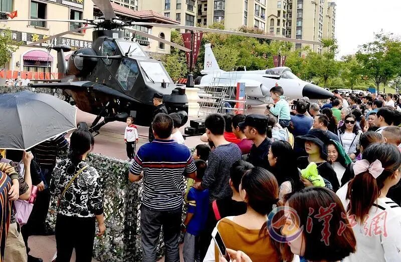 2018年10月1日,市民在高新區(qū)富康大道參觀我市首屆國防兵器展,歡慶國慶佳節(jié)。
