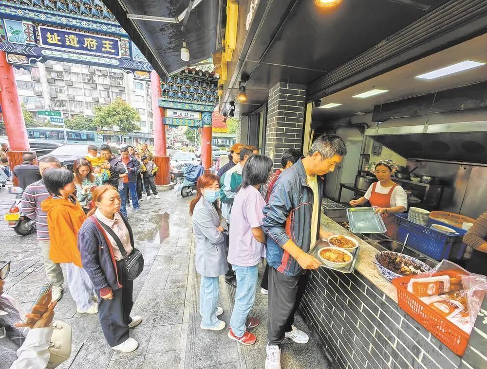 2024年“十一”期間,市民和外地游客排長隊(duì)品嘗襄陽牛肉面,“打卡”襄陽特色美食。記者謝勇攝
