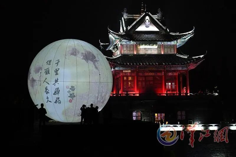 2017年國慶、中秋期間,我市持續(xù)降雨,市民在仲宣樓欣賞人造月亮。記者安富斌攝