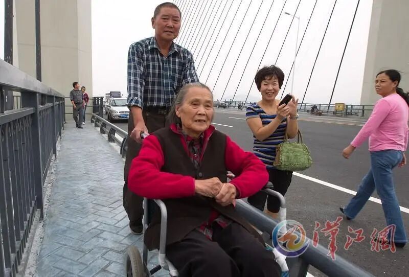 2013年10月2日,一名市民帶著母親來到臥龍大橋上,感受城市的變化。記者張文華攝
