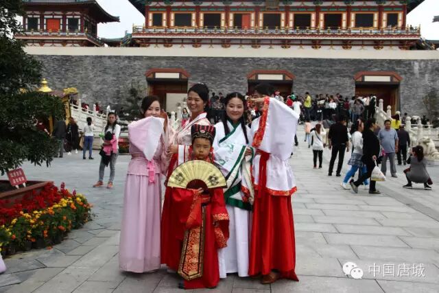 2015年“十一”黃金周,在襄陽盛世唐城景區(qū),游客們身著唐裝一秒變“唐人”,感受地道唐風(fēng)古韻的歌舞演藝。