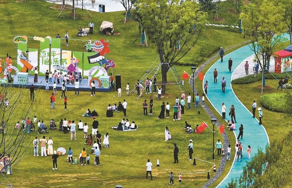 2023年“十一”期間,市民在襄水源公園游玩。記者謝勇攝