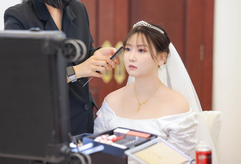 新娘對鏡梳妝,靜候愛人