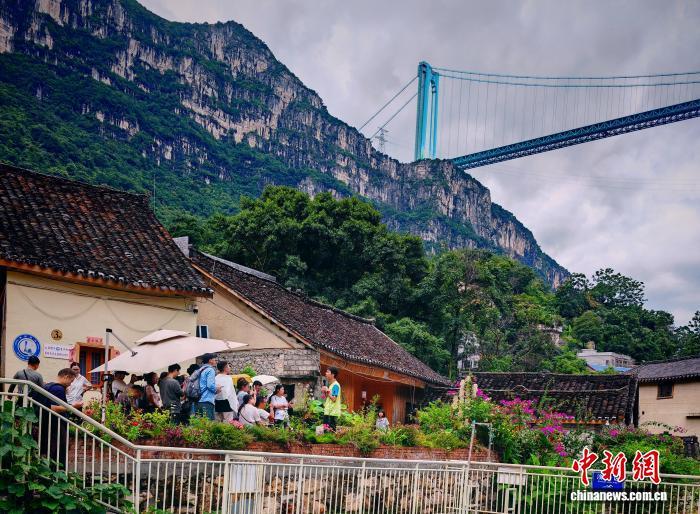 景區工作人員6日告訴中新社記者,除蹦極、蕩繩等橋上極限體驗項目外,觀光電梯、在橋畔的云渡服務區遠觀大橋也廣受游客歡迎。