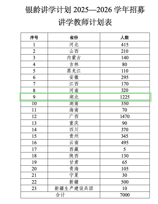 近日,教育部、財政部發布關于做好2025年銀齡講學計劃有關實施工作的通知,計劃在2025年義務教育階段招募7000名講學教師,旨在充分利用退休教師專業優勢、經驗優勢,加強新時代鄉村教師隊伍建設,推動鞏固脫貧攻堅成果同鄉村振興有效銜接。其中,湖北將招募1225名。
