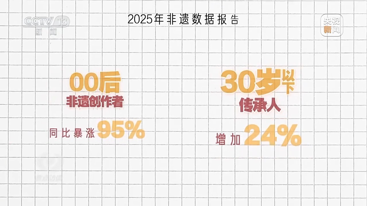 也許有人覺得這些故事太個別,所以我找到了某短視頻平臺今年的非遺數據報告,也很能說明問題。報告中提到,一年來00后非遺創作者同比暴漲95%,30歲以下傳承人增加24%。越來越多年輕人主動扛起了傳承的擔子。為啥他們愿意一頭扎進這些“老行當”?我找到了幾位新生代代表性傳承人,試著解開這份“偏愛”背后的密碼。