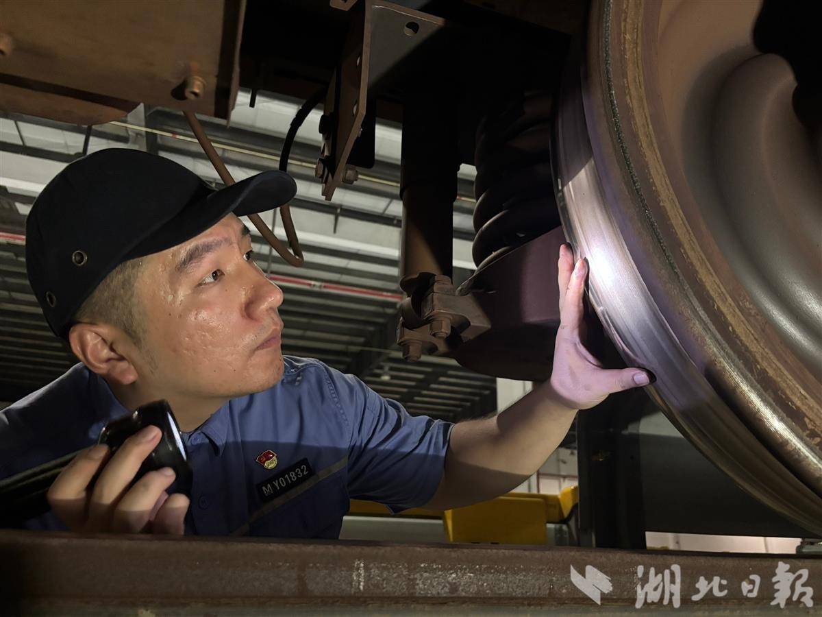 ▲地鐵列車檢修人員龔一帆精心檢修列車,保障乘客安全舒適出行。湖北日報通訊員袁永華 攝