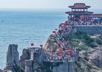 10月4日,游客在山東省榮成市成山頭風景區游玩。新華社發