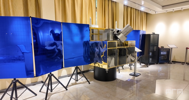 我國第一顆量子科學實驗衛(wèi)星“墨子號”模型(央廣網(wǎng)記者 劉暢司晨 攝)