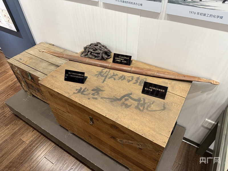 展柜中兩塊陳舊的紅色磚塊,銘刻著“史上最牛燒磚工”的故事。“當時,為了能盡快恢復科研和教學工作,中國科大師生親手燒制了建造化學樓的紅磚,其中很多老師、學生如今已經(jīng)成長為教授甚至院士,所以我們也經(jīng)常戲稱這群燒磚工為‘史上最牛燒磚工’。”王茂華介紹。