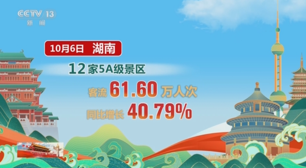 6日當天,納入監測的1040家文旅單位客流197.12萬人次。其中,12家5A級景區客流61.6萬人次,同比增長超過40%。