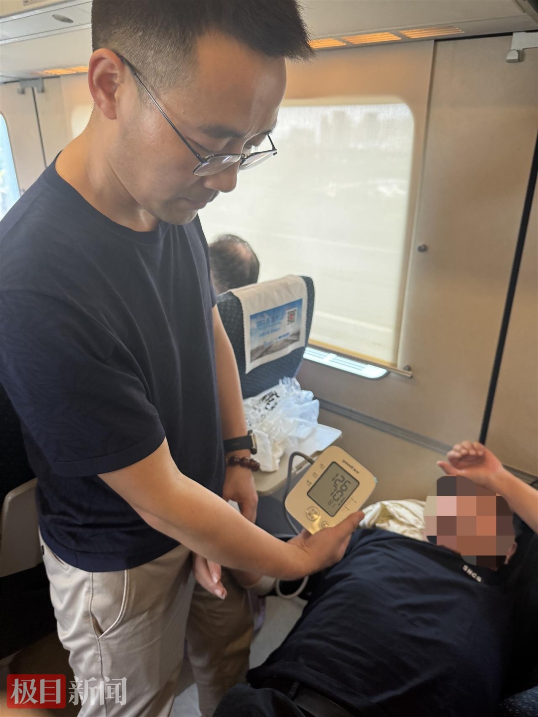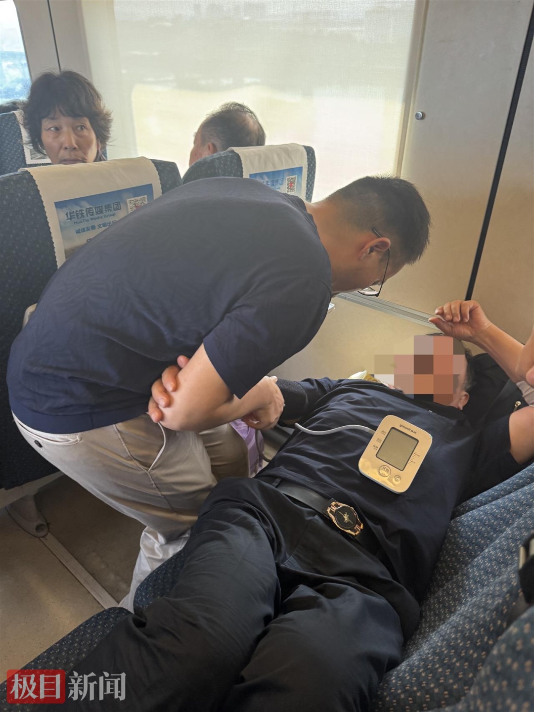 癥狀初步緩解后,王強的守護并未停止。回到16號車廂不到五分鐘,得知老人再次不適,他立即折返,重新監測其生命體征。